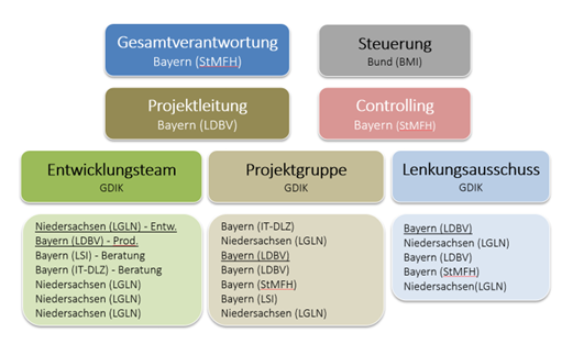 Neben der funktionalen Entwicklung einer hilfreichen Geokomponente im Umfeld der OZG-Antragsverfahren lagen von Beginn an auch die IT-Sicherheit und Anwendungsperformance im Mittelpunkt des Handelns. Daher sind auch das Landesamt für Sicherheit in der Informationstechnik (LSI) und das IT-Dienstleistungszentrum (IT-DLZ) des Freistaats Bayern fester Bestandteil der Projektstruktur.