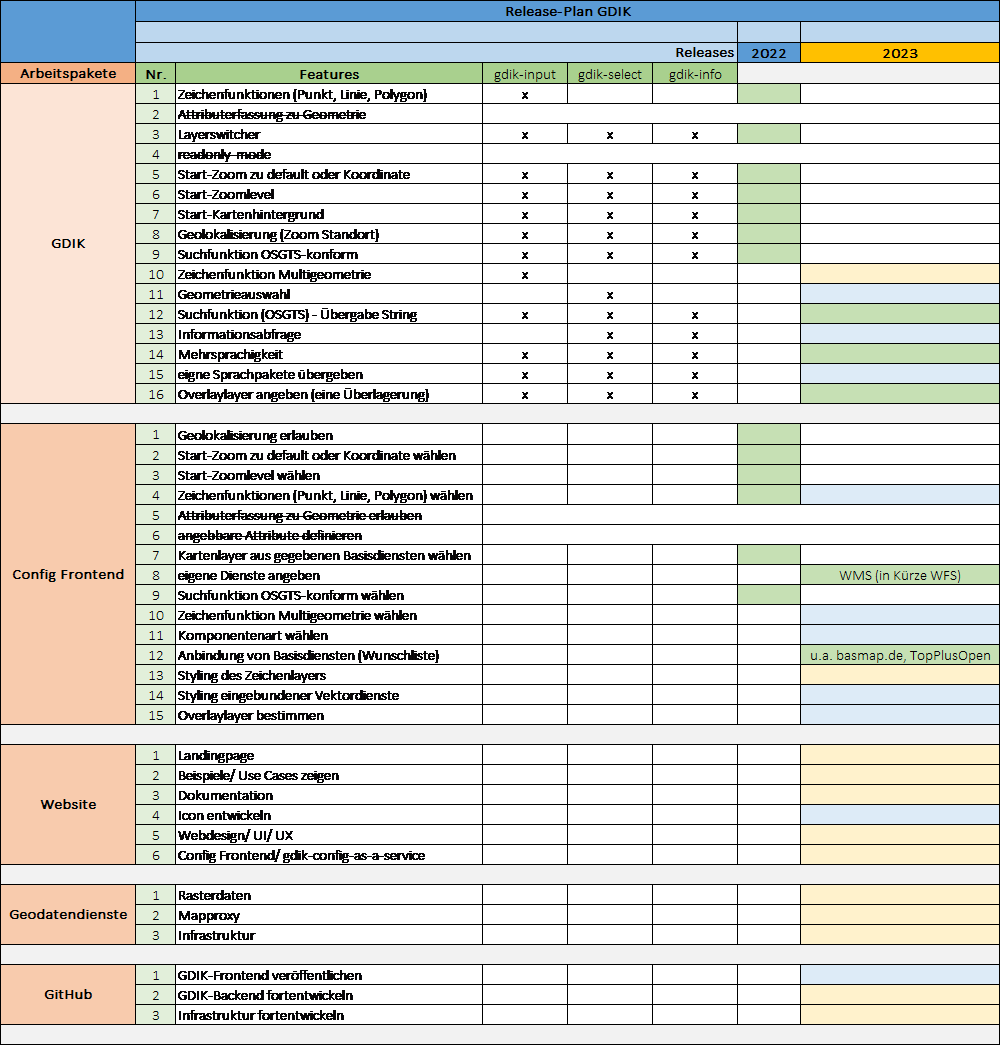 Zur agilen Umsetzung der Geodigitalisierungskomponente wurden durch die Projektgruppe Releaseplanungen für Entwicklung und Betrieb aufgestellt und regelmäßig fortgeschrieben. Das Entwicklungsteam arbeitet diese in Sprints ab und präsentiert die Ergebnisse im Review.